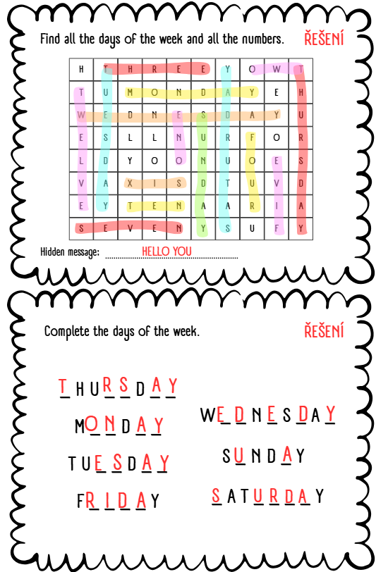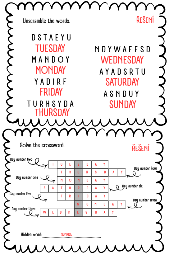 DAYS OF THE WEEK - STANOVIŠTĚ, PRACOVNÍ LIST