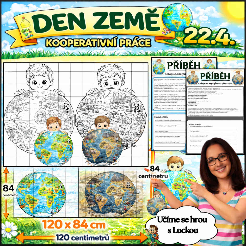 DEN ZEMĚ - KOOPERATIVNÍ PRÁCE - MEGA OMALOVÁNKA, PŘÍBĚHY - ČTENÍ S POROZUMĚNÍM
