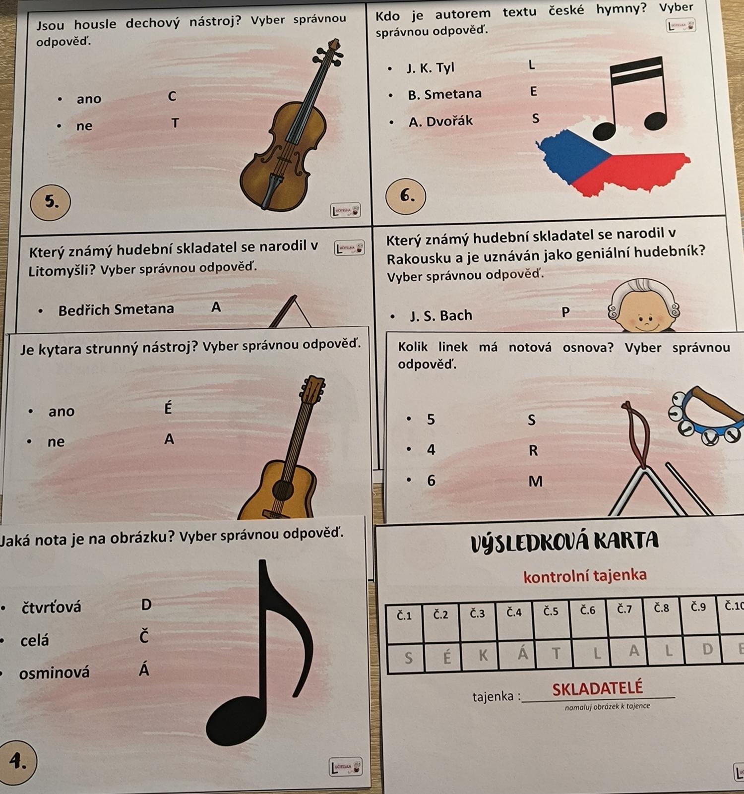 HUDBA - KVÍZ A PRACOVNÍ LISTY