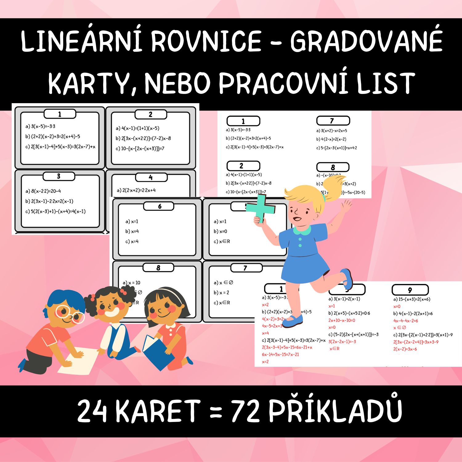 LINEÁRNÍ ROVNICE SE ZÁVORKAMI - GRADOVANÉ KARTY - PRACOVNÍ LIST - CELÁ ČÍSLA