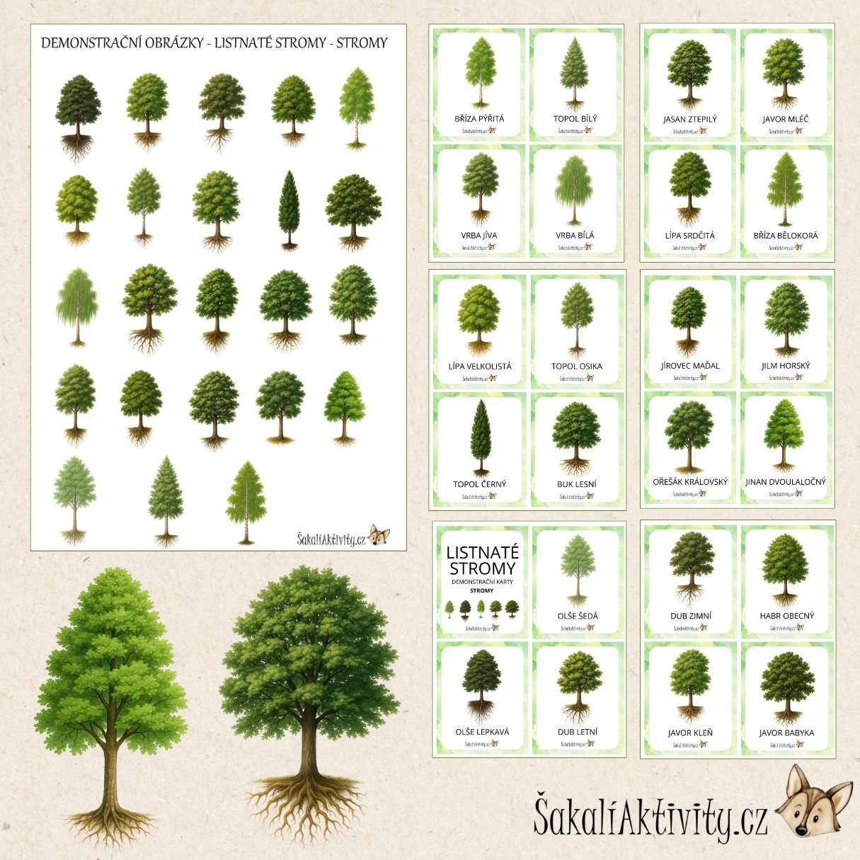 LISTNATÉ STROMY - STROMY - DEMONSTRAČNÍ KARTY
