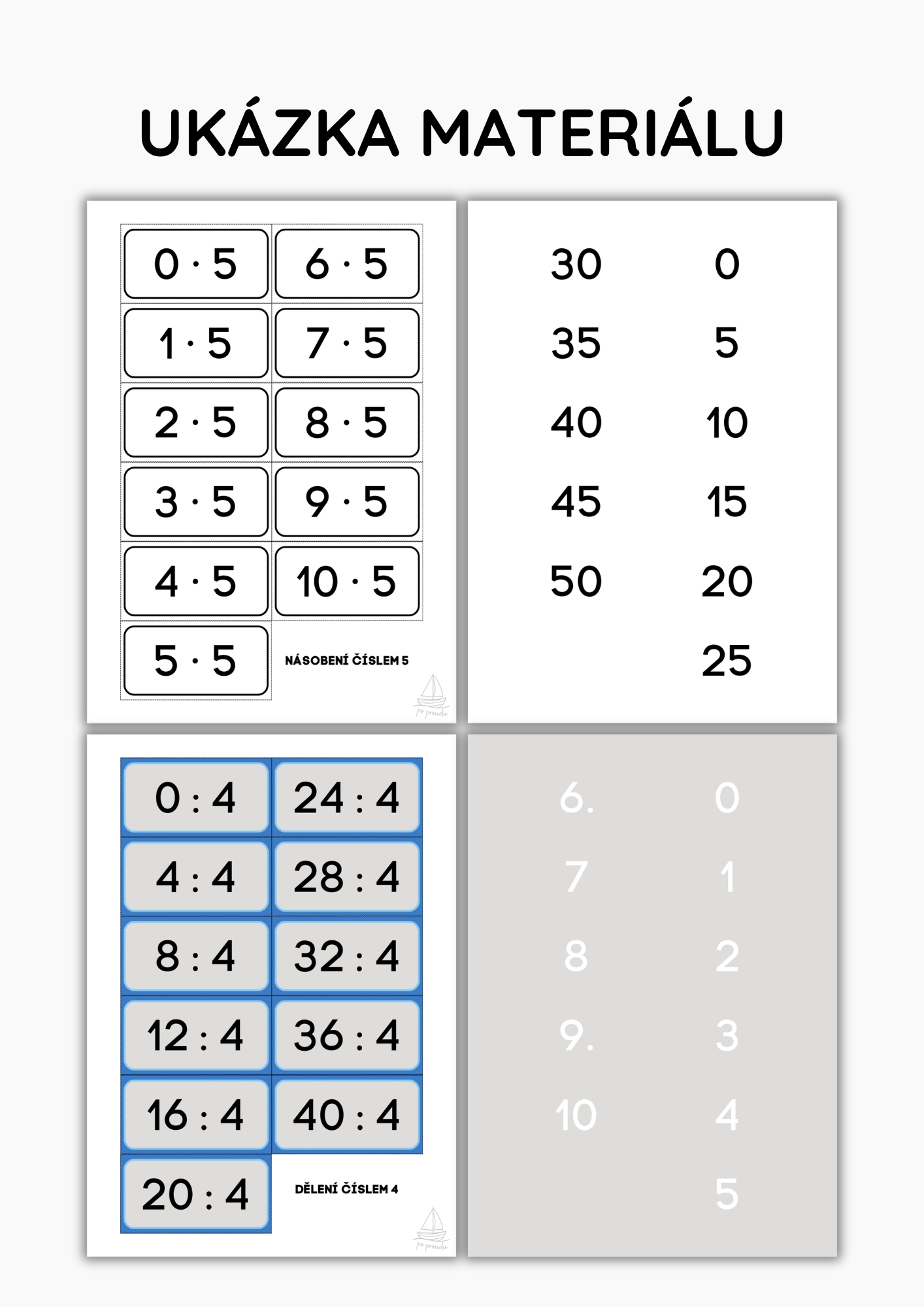 MALÁ NÁSOBILKA (0–5) | OBOUSTRANNÉ KARTIČKY PRO PROCVIČOVÁNÍ