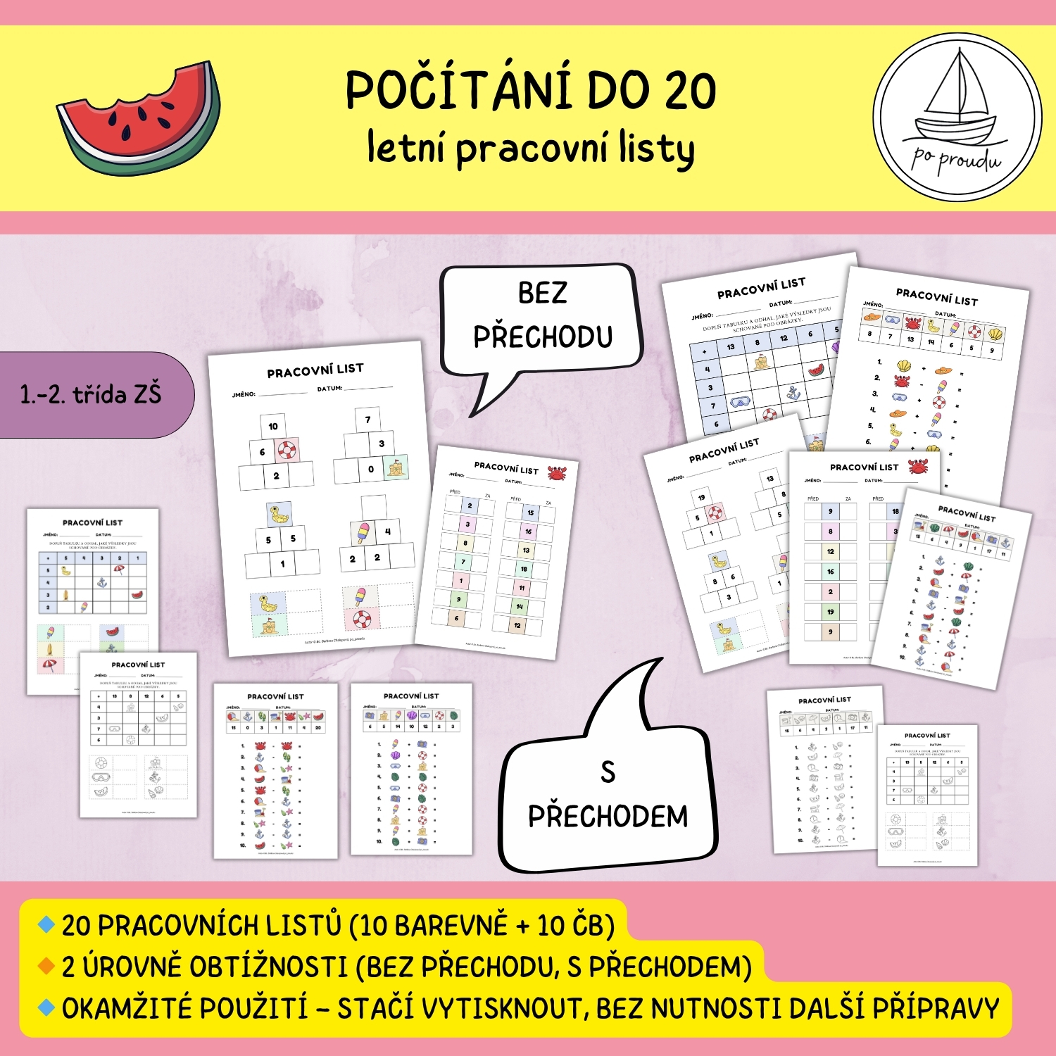 POČÍTÁNÍ DO 20 - LETNÍ PRACOVNÍ LISTY