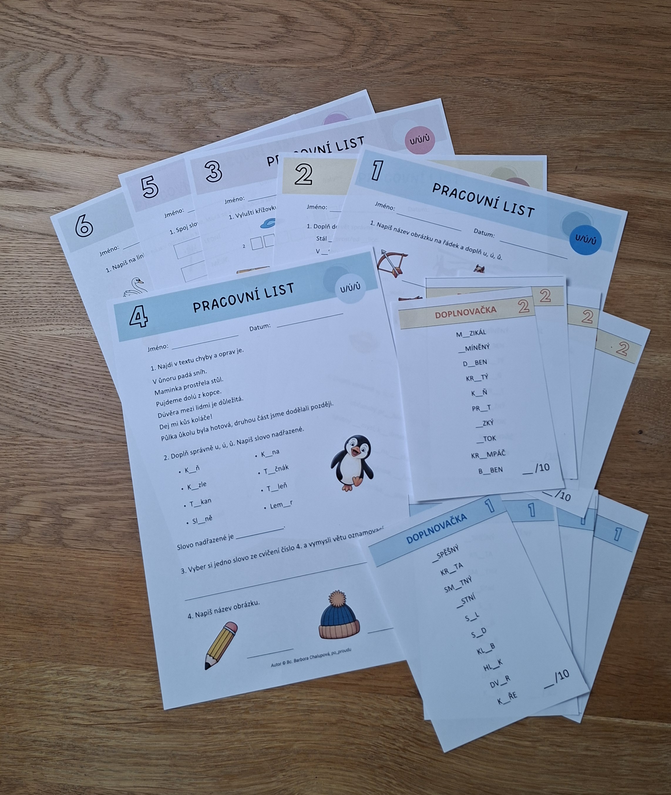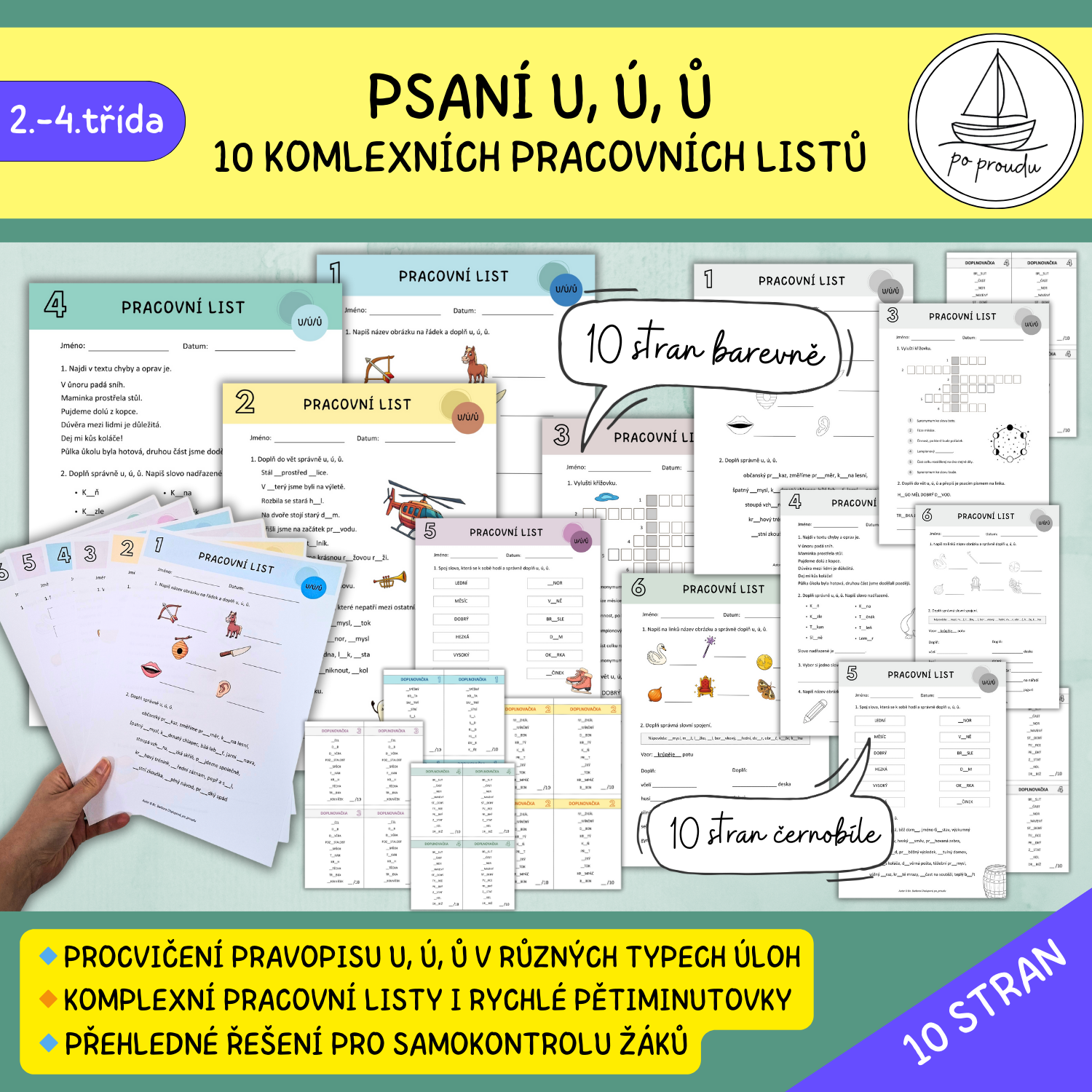 PSANÍ U, Ú, Ů - 10 PRACOVNÍCH LISTŮ