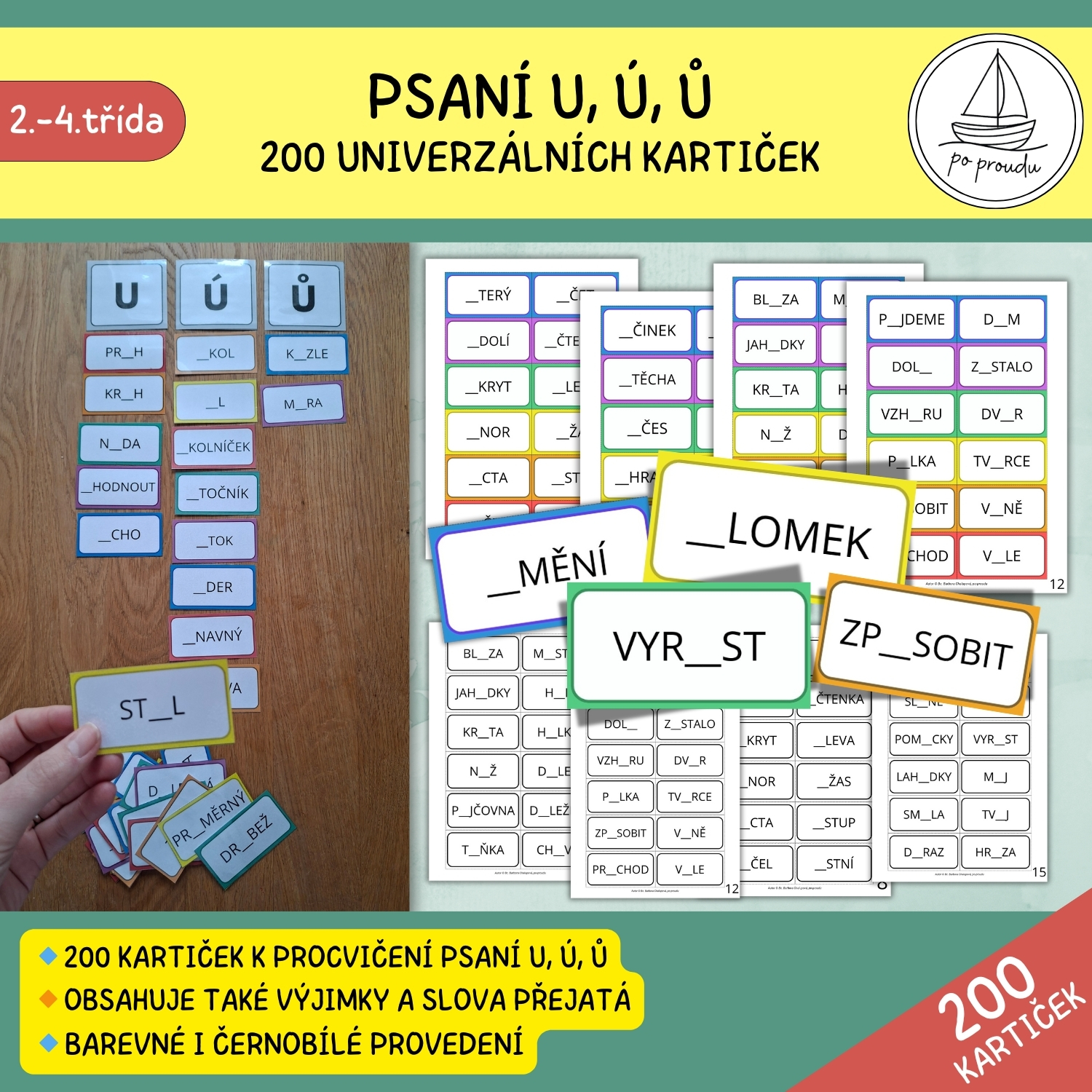 PSANÍ U, Ú, Ů - KARTIČKY (200 KS)