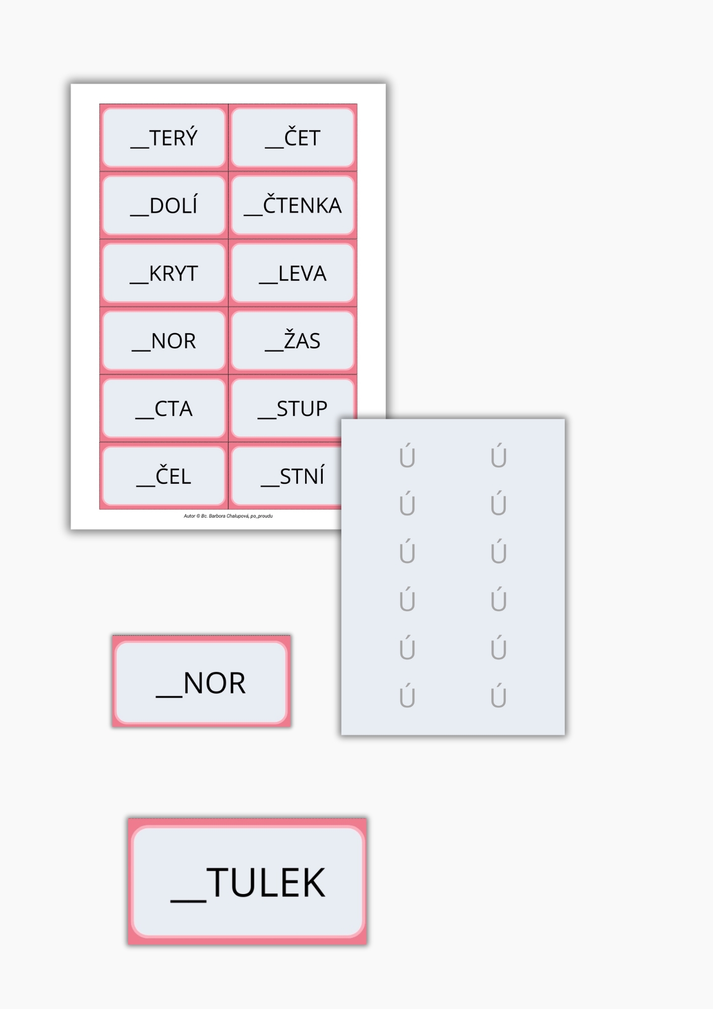 PSANÍ U, Ú, Ů - OBOUSTRANNÉ KARTIČKY