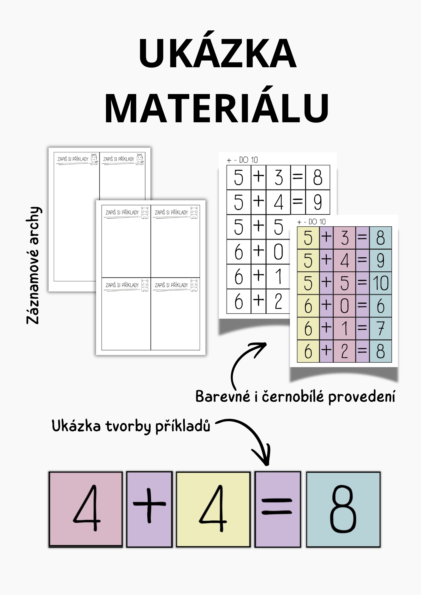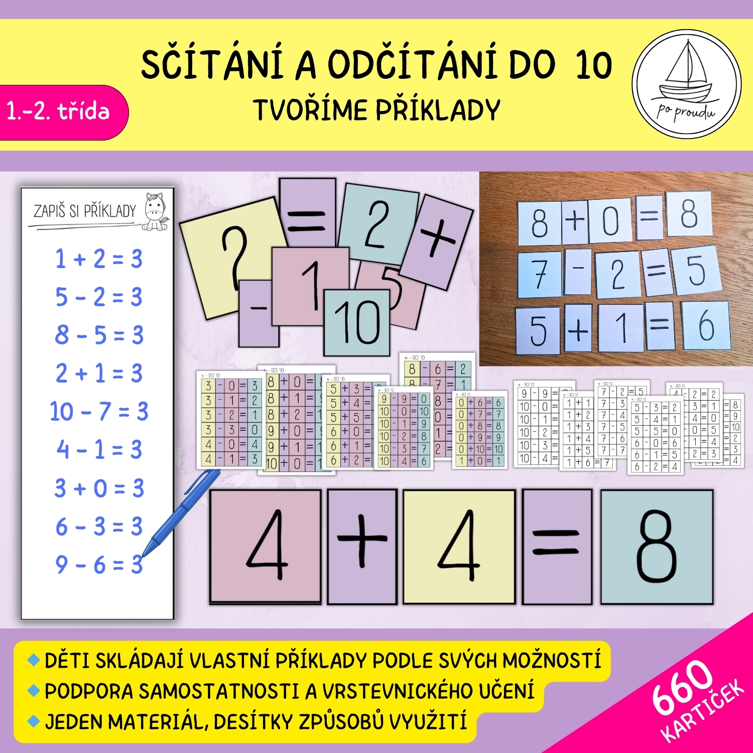 SČÍTÁNÍ A ODČÍTÁNÍ DO 10 - TVOŘÍME PŘÍKLADY (660 KARTIČEK)