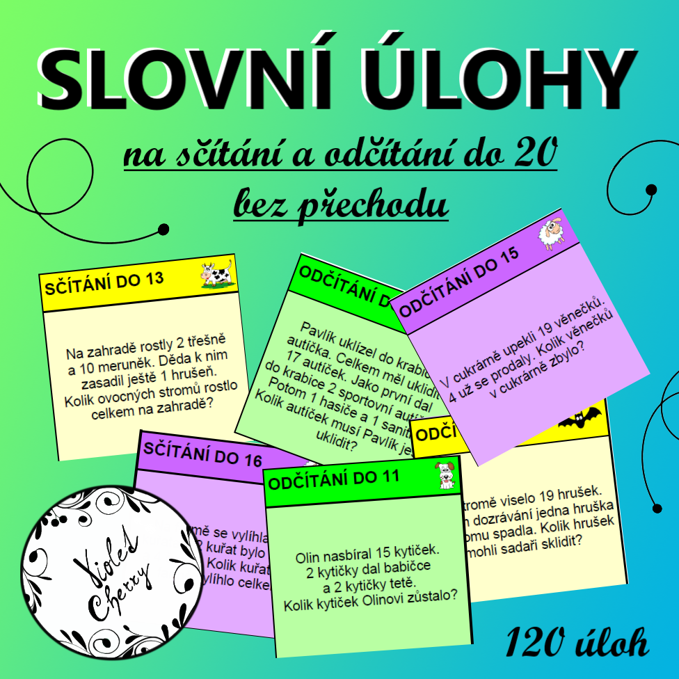 SLOVNÍ ÚLOHY PRO 2. ROČNÍK - SČÍTÁNÍ A ODČÍTÁNÍ DO 20 BEZ PŘECHODU