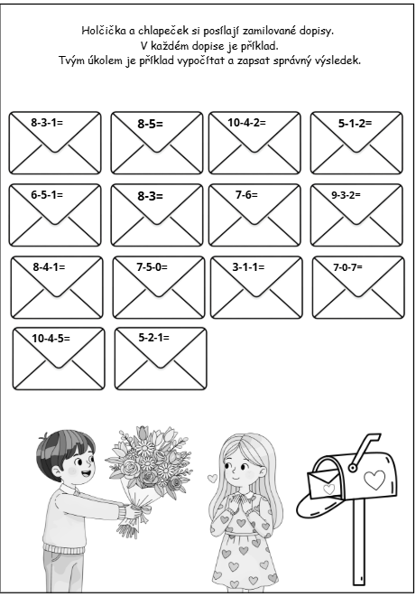 VALENTÝNSKÁ MATEMATIKA - 1. TŘÍDA - PRACOVNÍ LISTY