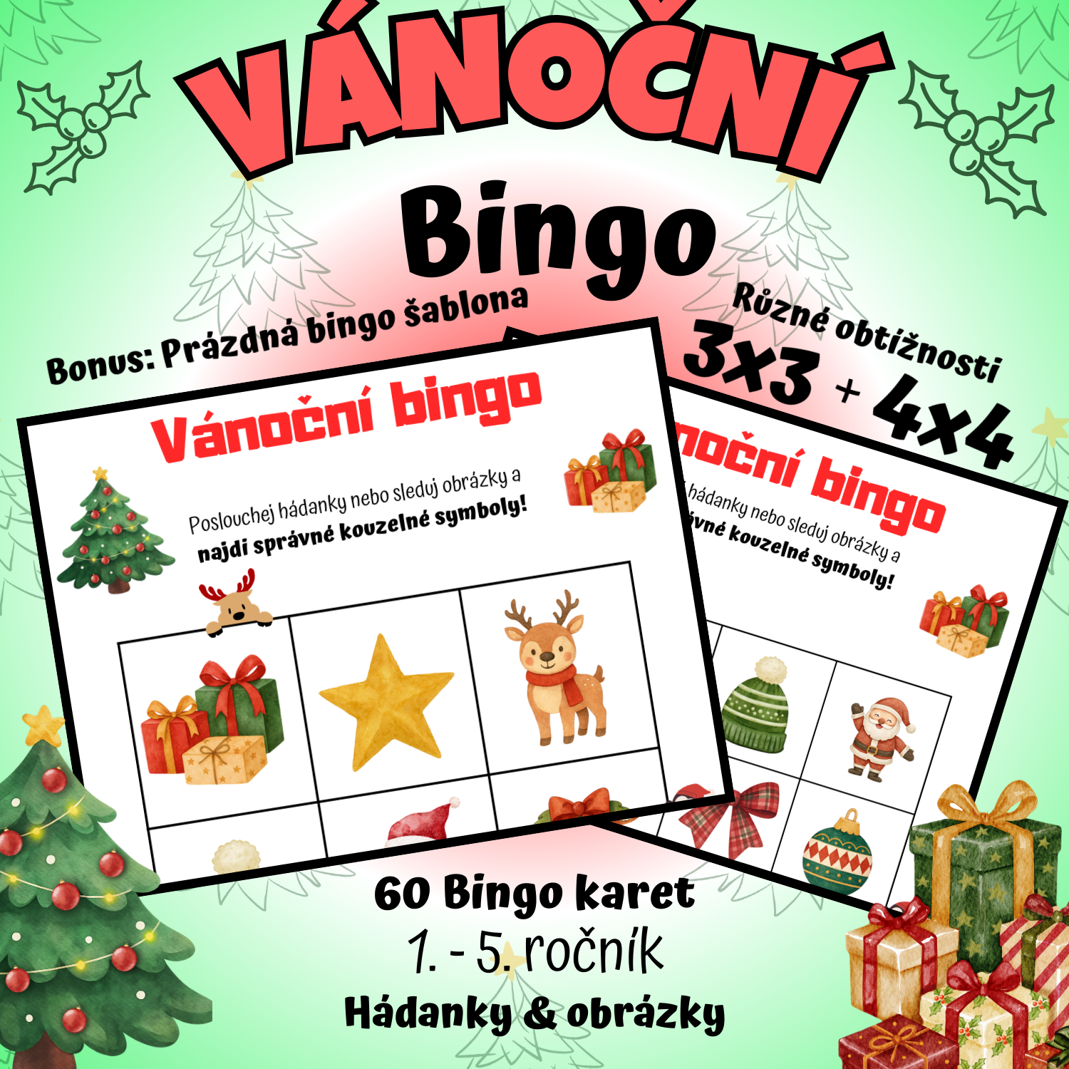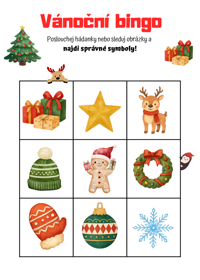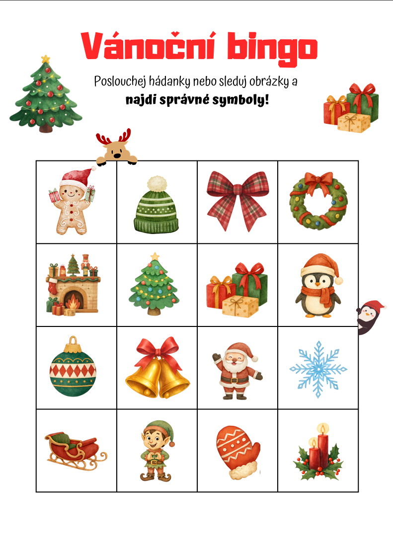 VÁNOČNÍ BINGO – 3×3 A 4×4 | OBRÁZKY & HÁDANKY