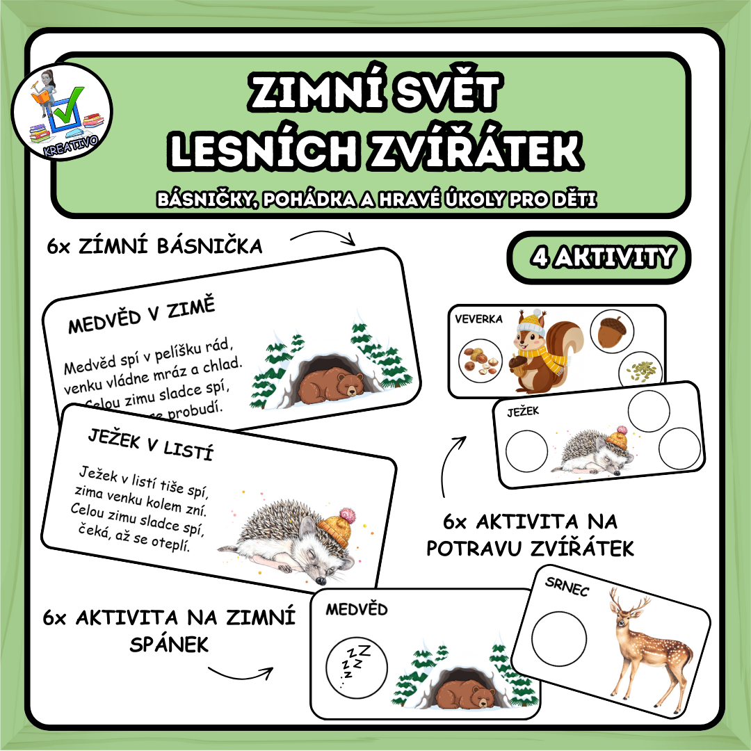 ZIMNÍ SVĚT LESNÍCH ZVÍŘÁTEK - BÁSNIČKY, POHÁDKA A HRAVÉ ÚKOLY PRO DĚTI