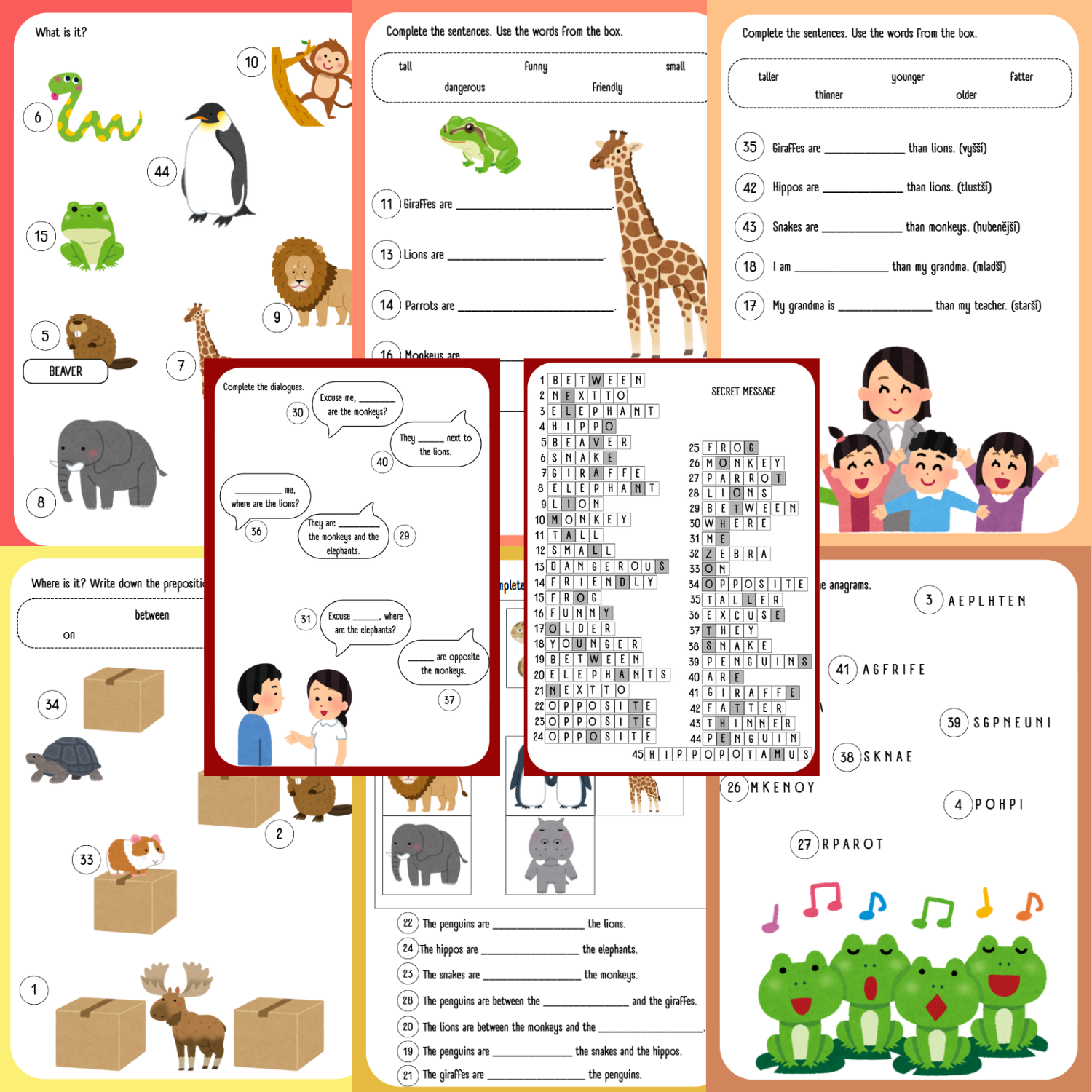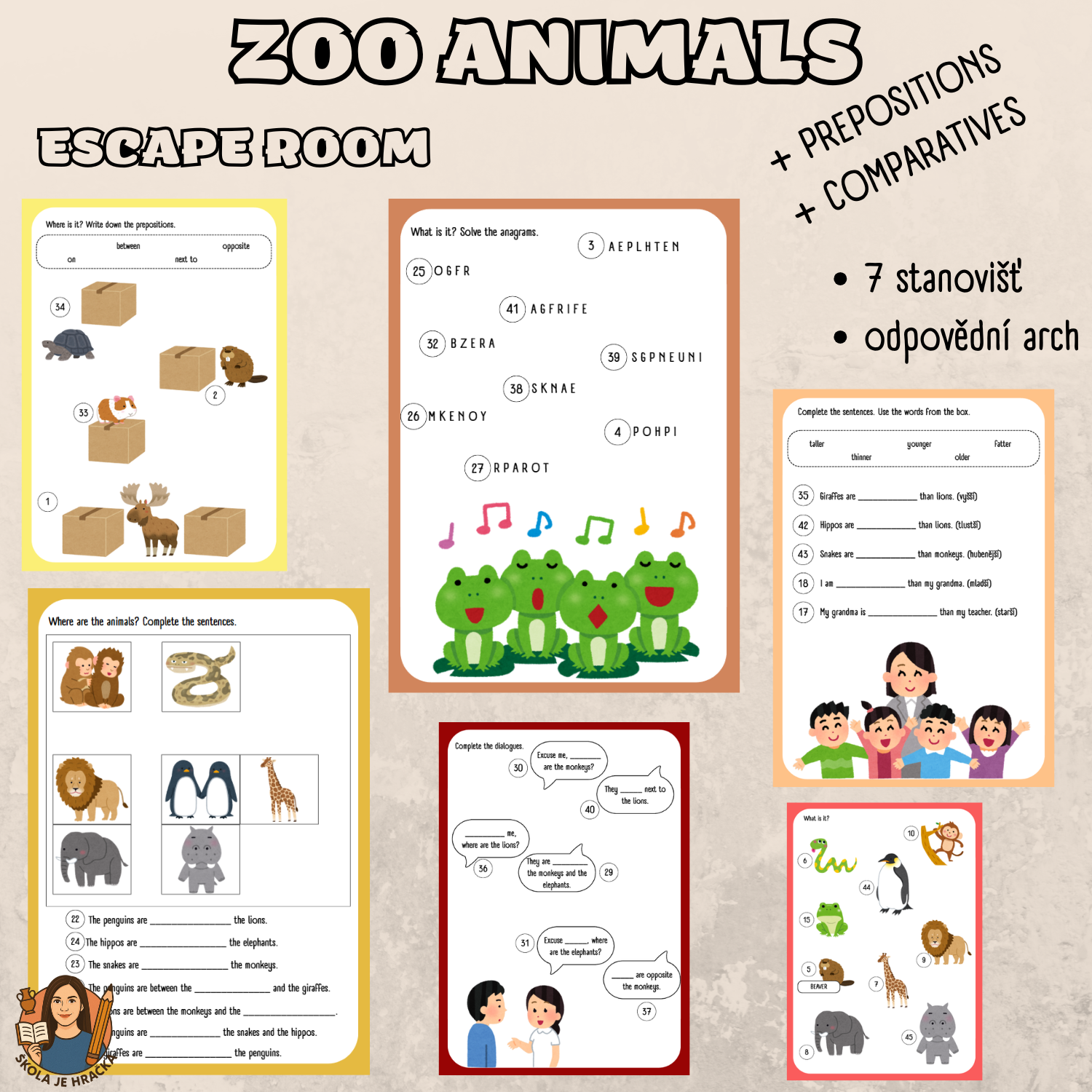ZOO ANIMALS, PREPOSITIONS, COMPARATIVES - ESCAPE ROOM