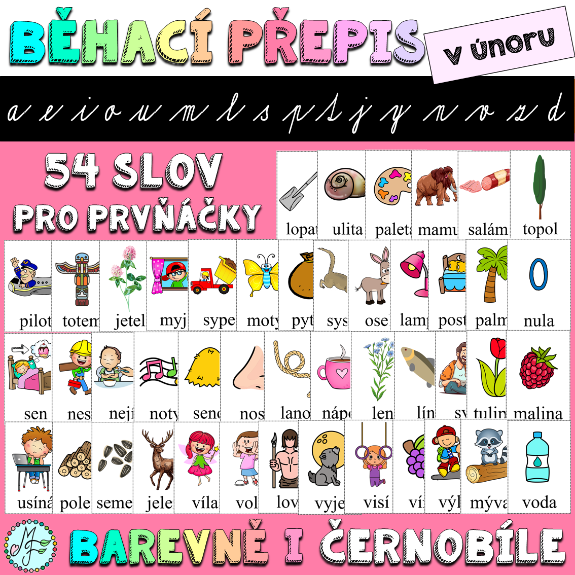 BĚHACÍ PŘEPIS V ÚNORU - 54 SLOV S PÍSMENY A,E,I,O,U,M,L,S,P,T,J,Y,N,V,Z,D