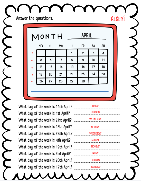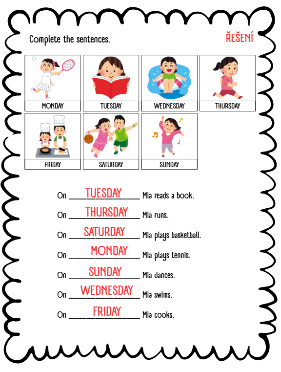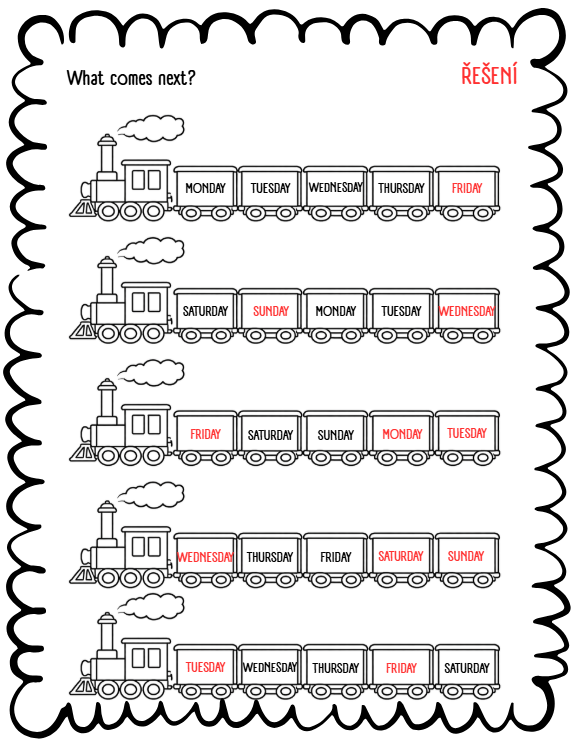 DAYS OF THE WEEK - STANOVIŠTĚ, PRACOVNÍ LIST