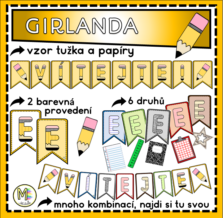 GIRLANDA - VZOR TUŽKA A PAPÍRY