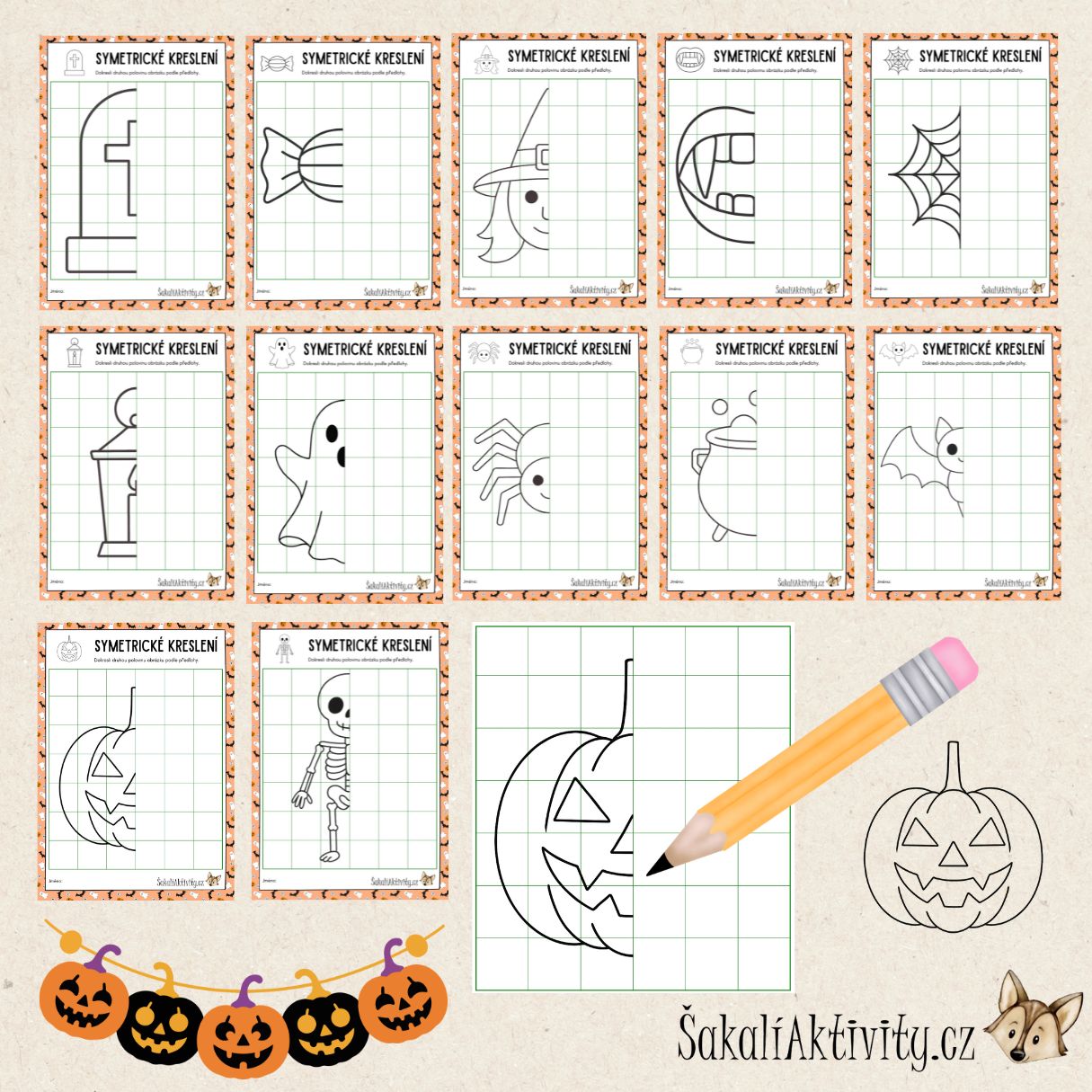 HALLOWEEN - SYMETRICKÉ OBRÁZKY/KRESLENÍ