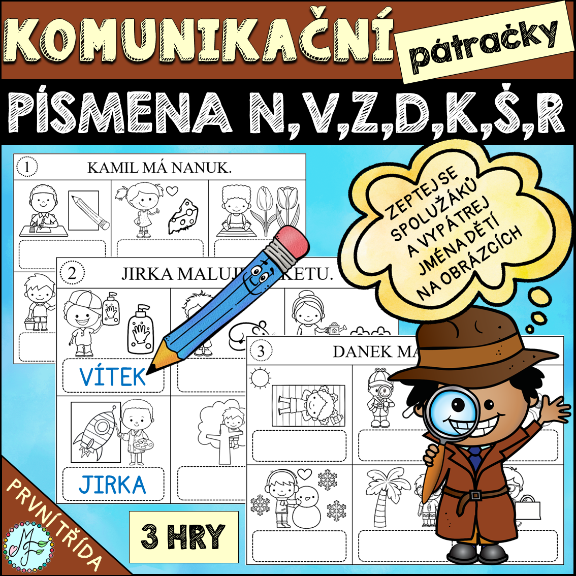KOMUNIKAČNÍ PÁTRAČKY (VYPÁTREJ JMÉNO) - PÍSMENA ŽIVÉ ABECEDY + N,V,Z,D,K,Š,R