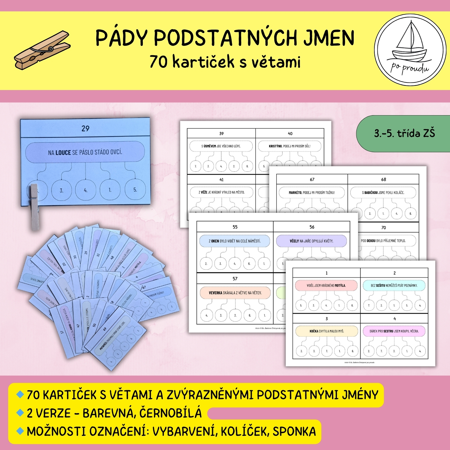PÁDY PODSTATNÝCH JMEN VE VĚTÁCH - 70 KARTIČEK