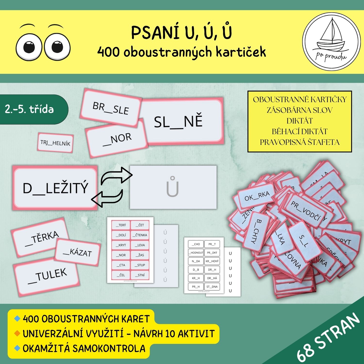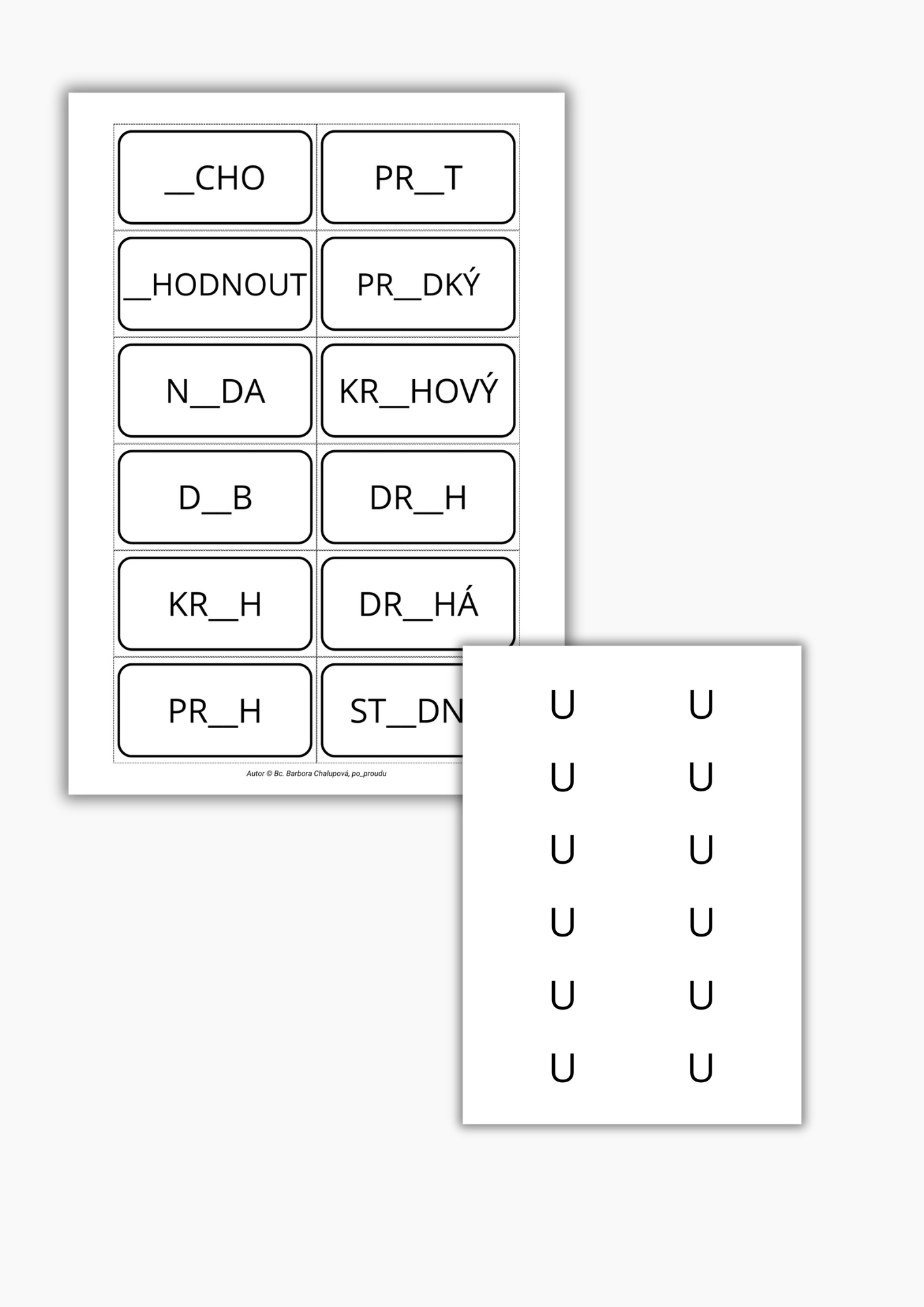 PSANÍ U, Ú, Ů - OBOUSTRANNÉ KARTIČKY