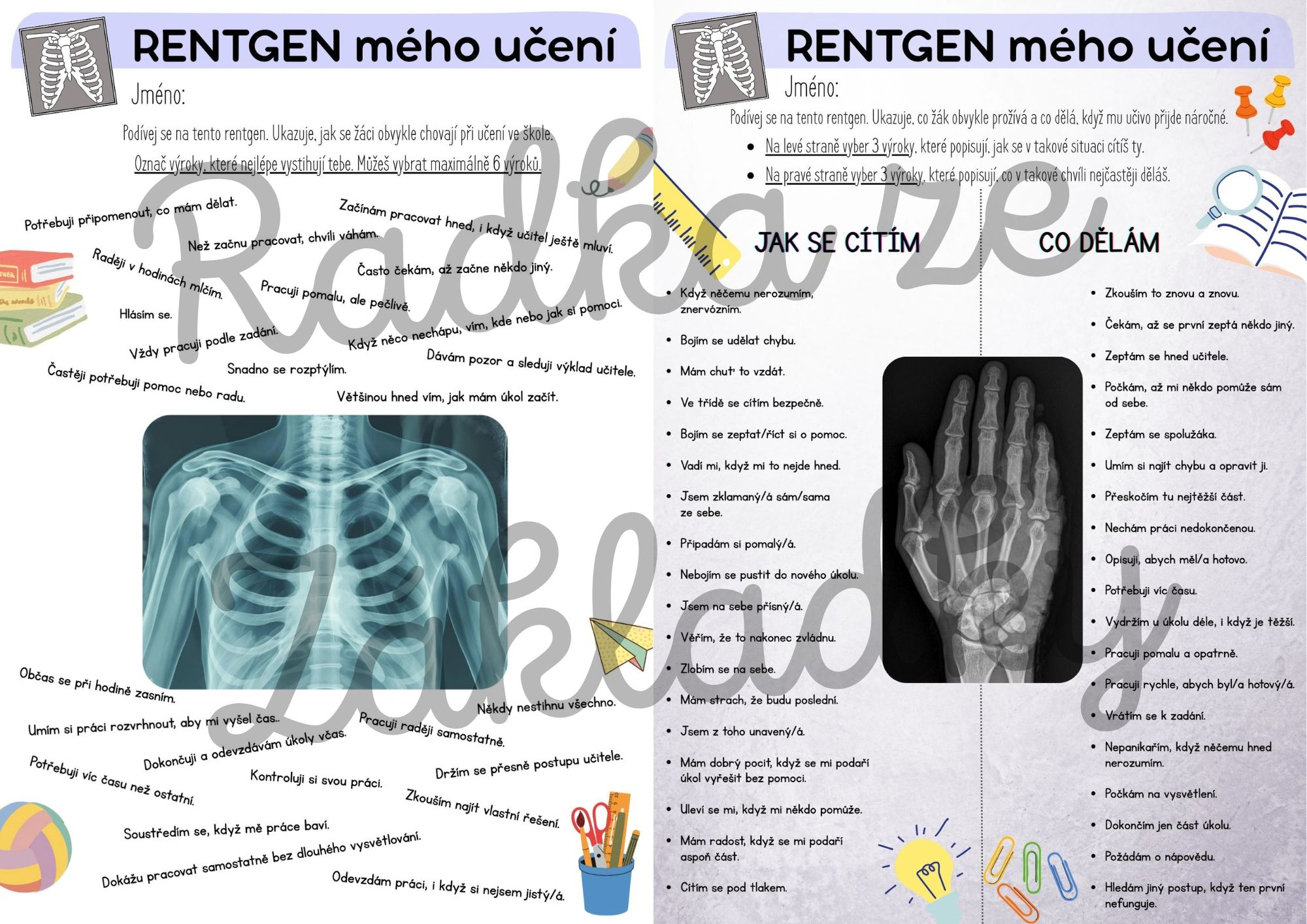 RENTGEN UČENÍ – SEBEHODNOCENÍ (JAK SE ŽÁCI DÍVAJÍ NA SVÉ UČENÍ)