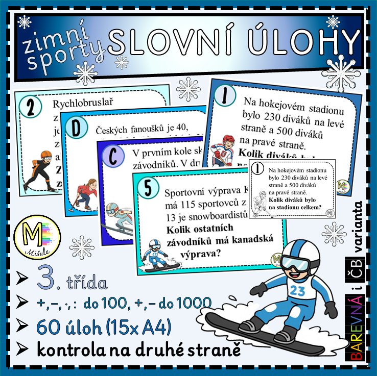 SLOVNÍ ÚLOHY - ZIMNÍ SPORTY - 3. TŘÍDA (+ A - DO 1000, .· A : DO 100)