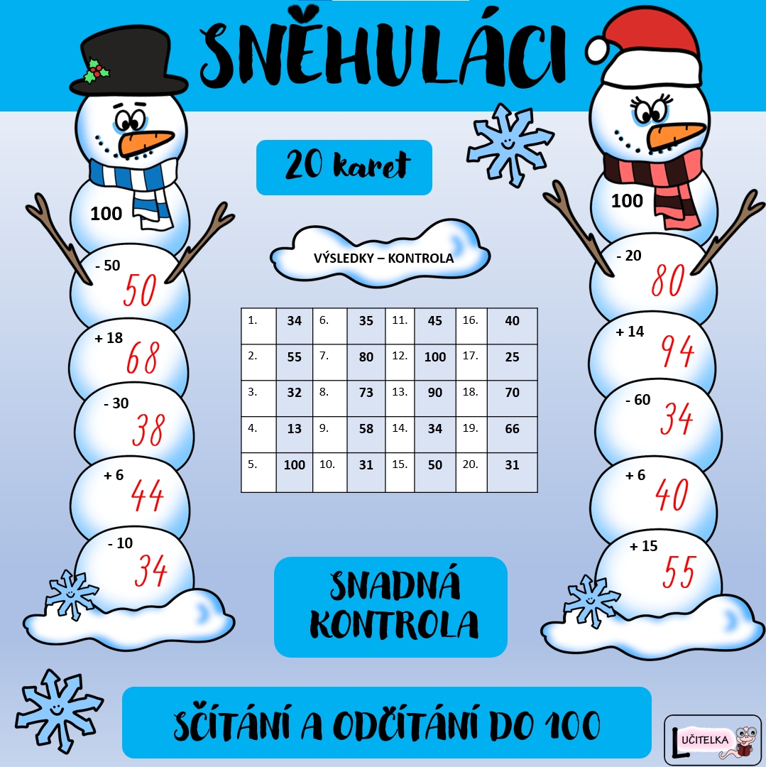 SNĚHULÁCI - SČÍTÁNÍ A ODČÍTÁNÍ DO 100