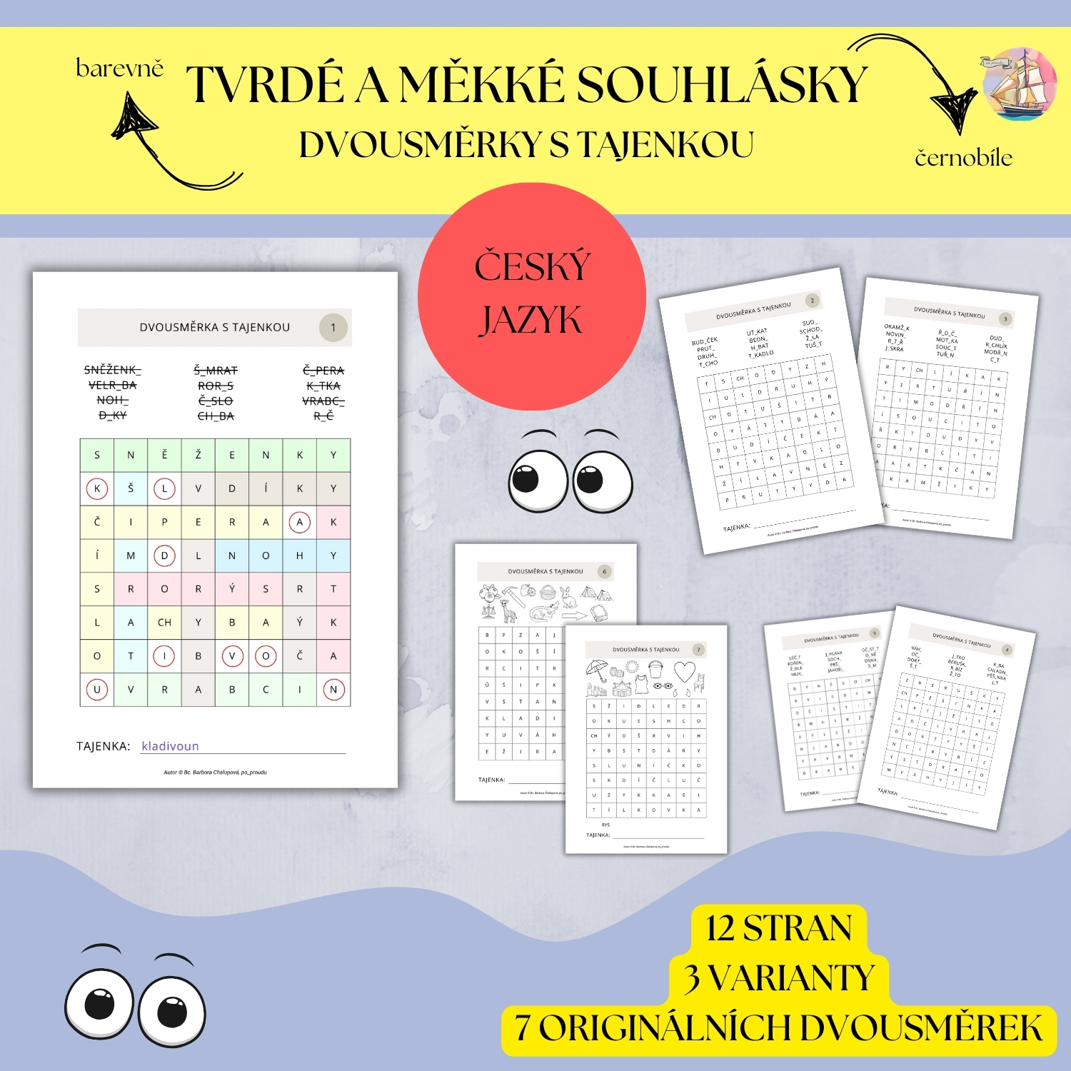TVRDÉ A MĚKKÉ SOUHLÁSKY / SLABIKY - DVOUSMĚRKY S TAJENKOU (HLEDEJ SLOVA)