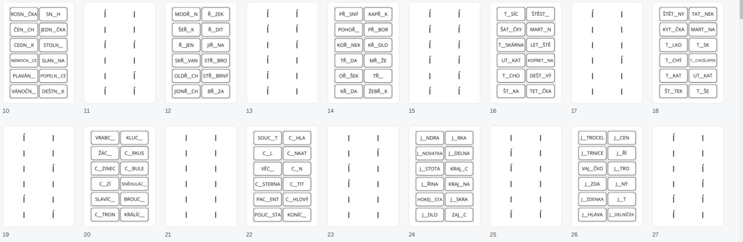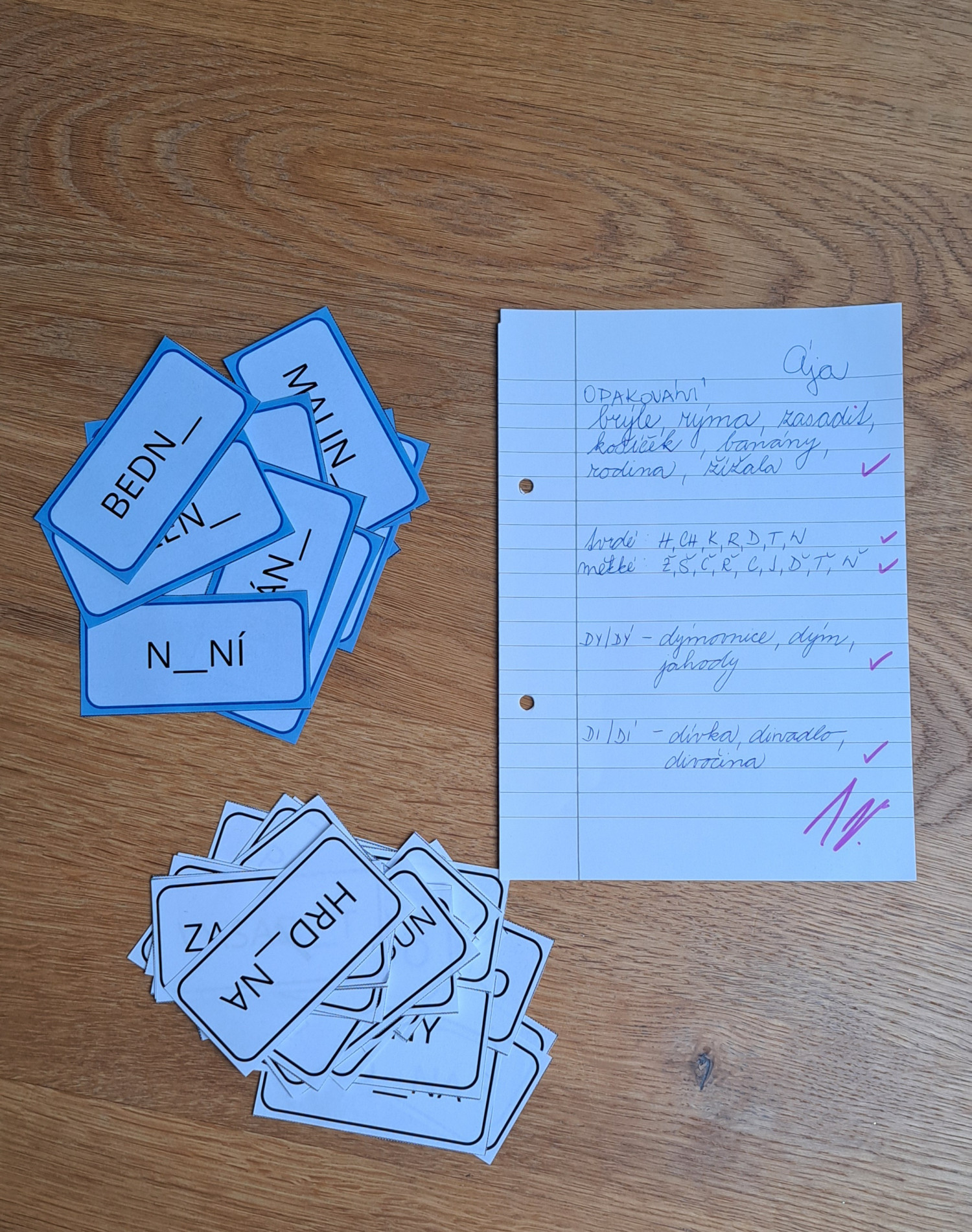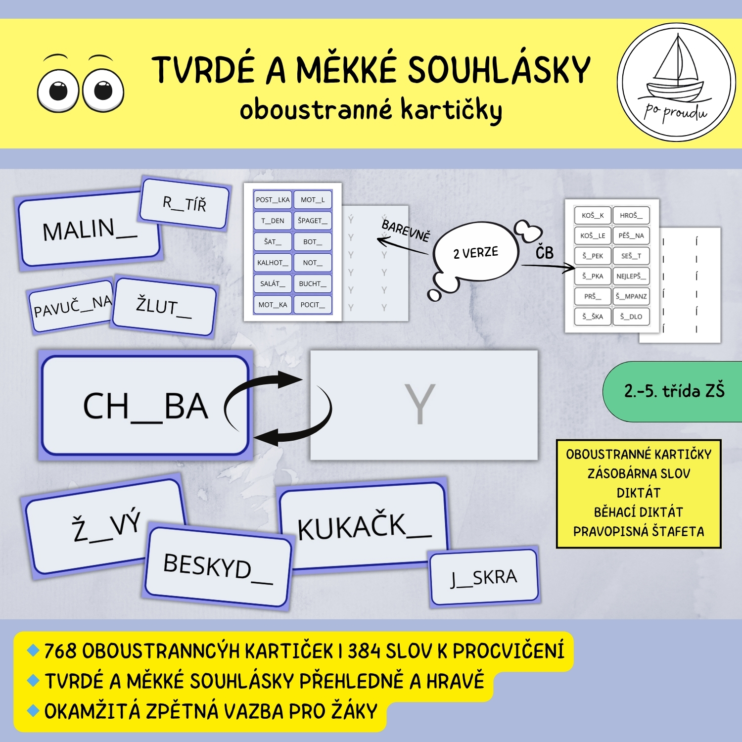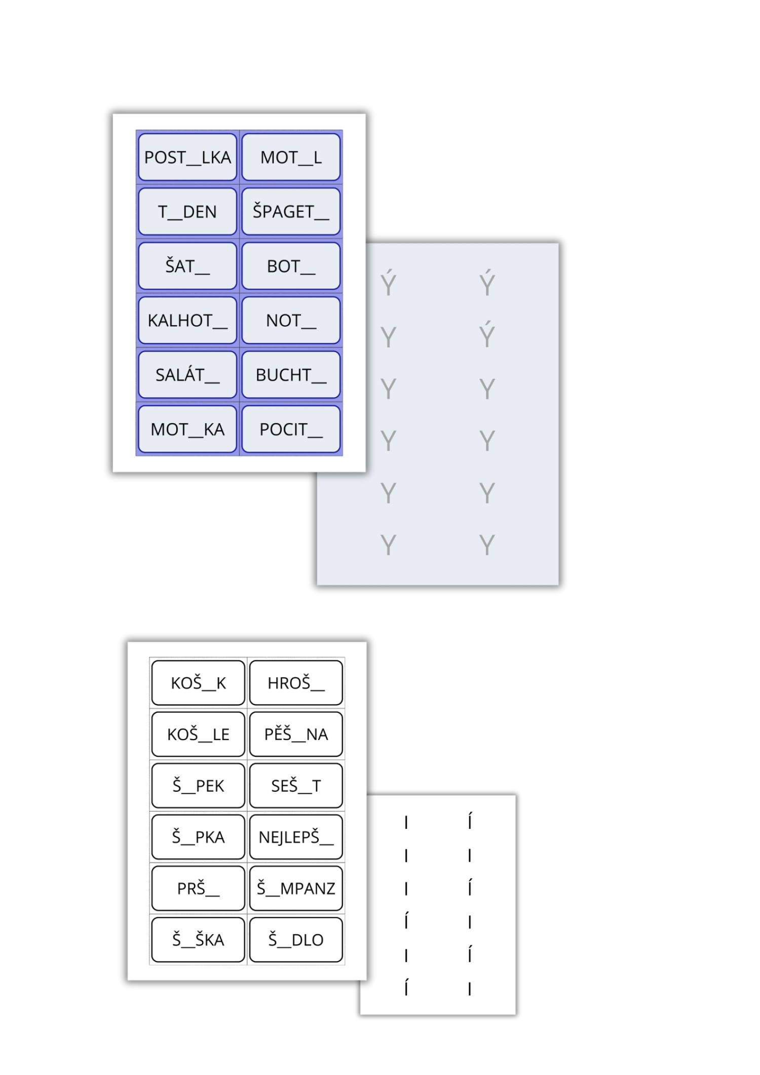 TVRDÉ A MĚKKÉ SOUHLÁSKY/SLABIKY - OBOUSTRANNÉ KARTIČKY