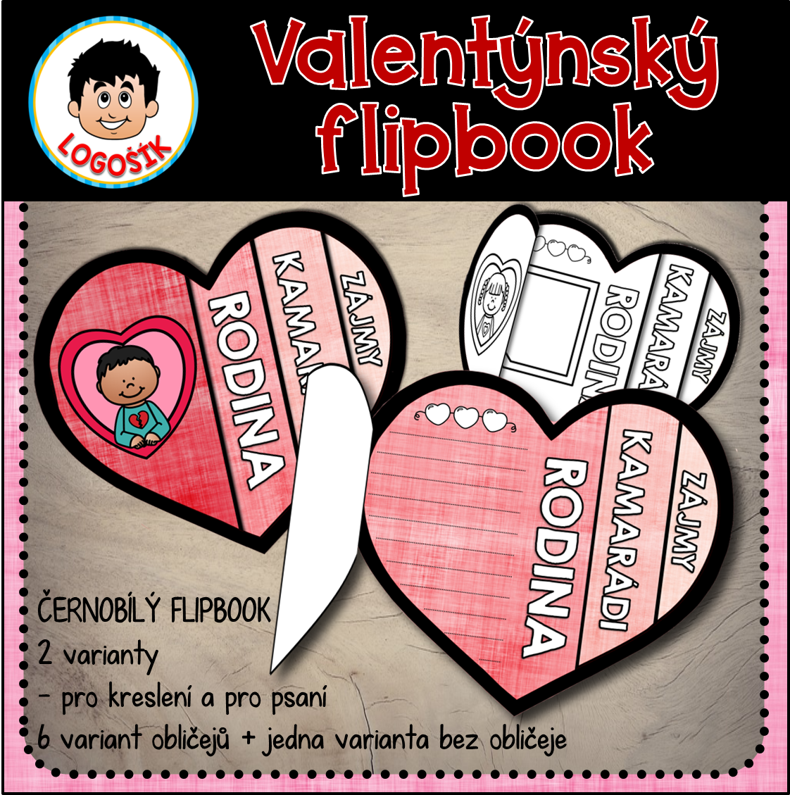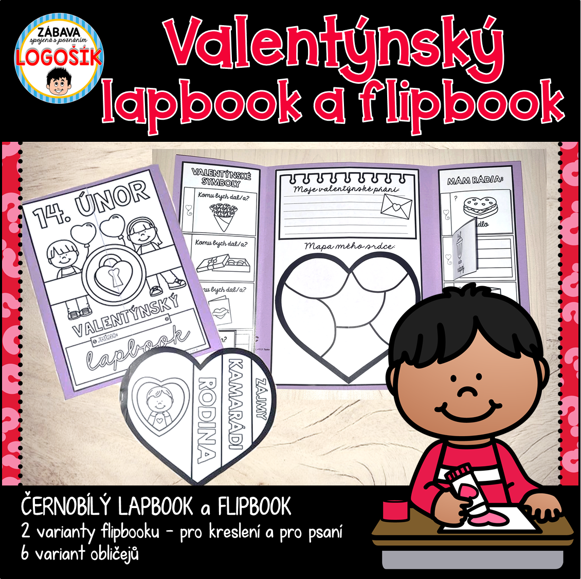 VALENTÝN - ČERNOBÍLÝ LAPBOOK A FLIPBOOK
