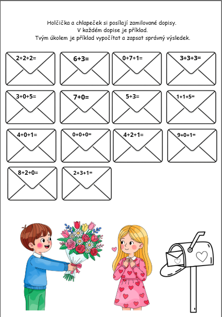 VALENTÝNSKÁ MATEMATIKA - 1. TŘÍDA - PRACOVNÍ LISTY