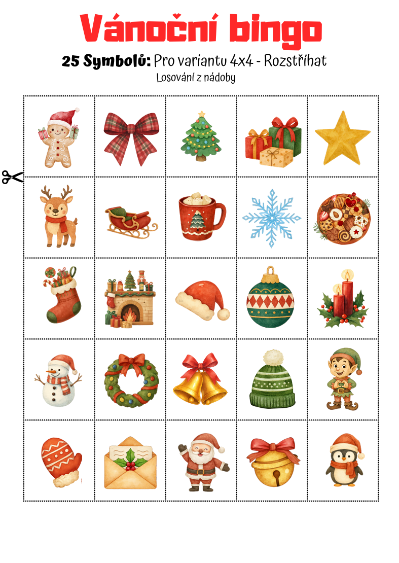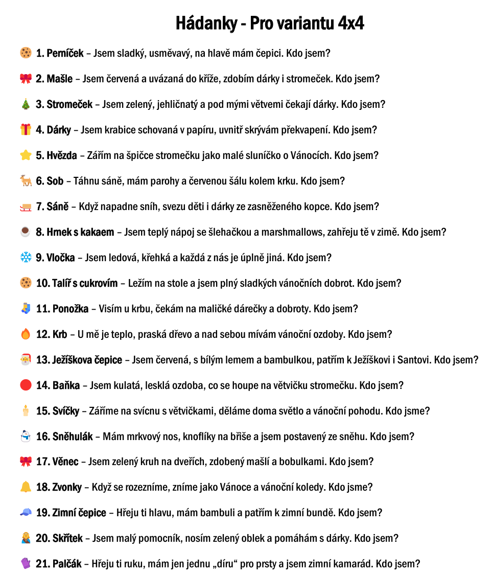 VÁNOČNÍ BINGO – 3×3 A 4×4 | OBRÁZKY & HÁDANKY