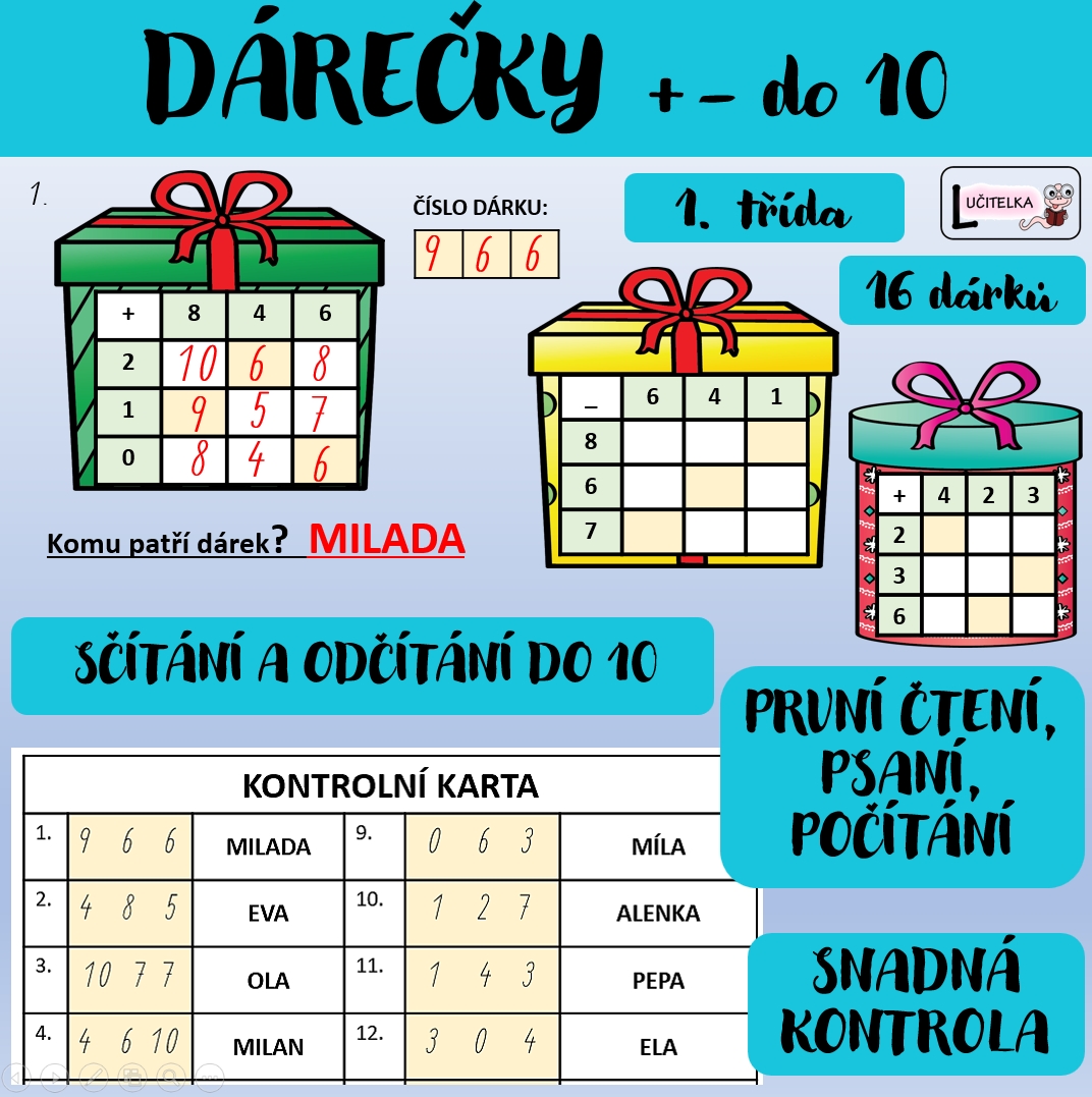 VÁNOČNÍ DÁRKY - PRVNÍ POČÍTÁNÍ A PSANÍ