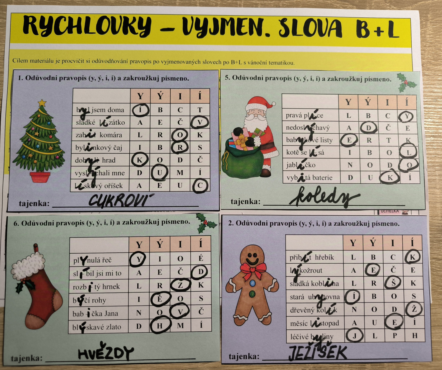 VÁNOČNÍ VYJMENOVANÁ SLOVA B+L