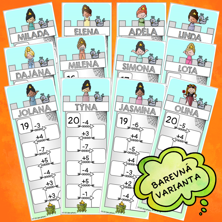 ZACHRAŇ PRINCEZNU - SČÍTÁNÍ A ODČÍTÁNÍ DO 20 BEZ PŘECHODU PŘES DESÍTKU (ŘETÍZKY)