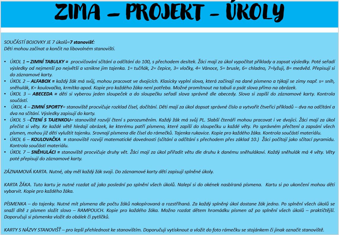 ZIMA - PROJEKT 2. TŘÍDA